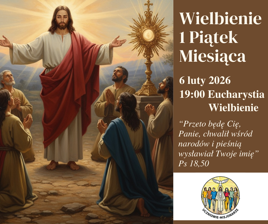 Zapraszamy na Wielbienie w Pierwszy Piątek miesiąca. To czas wspólnej modlitwy, adoracji Najświętszego Sakramentu i śpiewu, który odbędzie się po Eucharystii o 19:00.