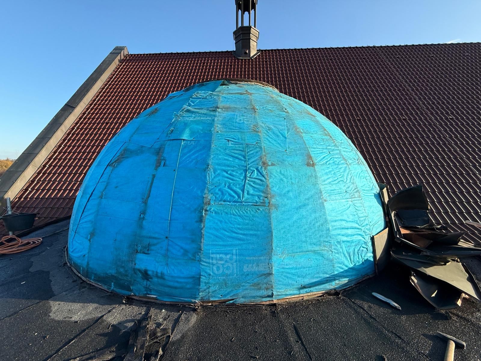 Nowe poszycie na kopulę kaplicy chrzcielnej.