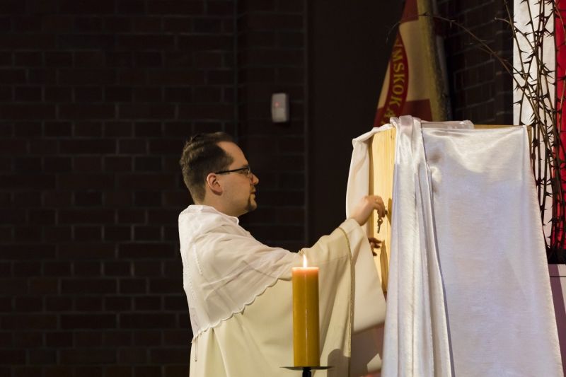 8:00, 17:30, 19:00 – Msza św. z modlitwą uwielbienia. W lipcu i sierpniu: 8:00 i 18:00.