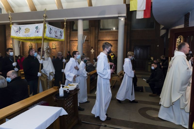 8:00, 17:30, 19:00 – Msza św. z modlitwą uwielbienia. W lipcu i sierpniu: 8:00 i 18:00.