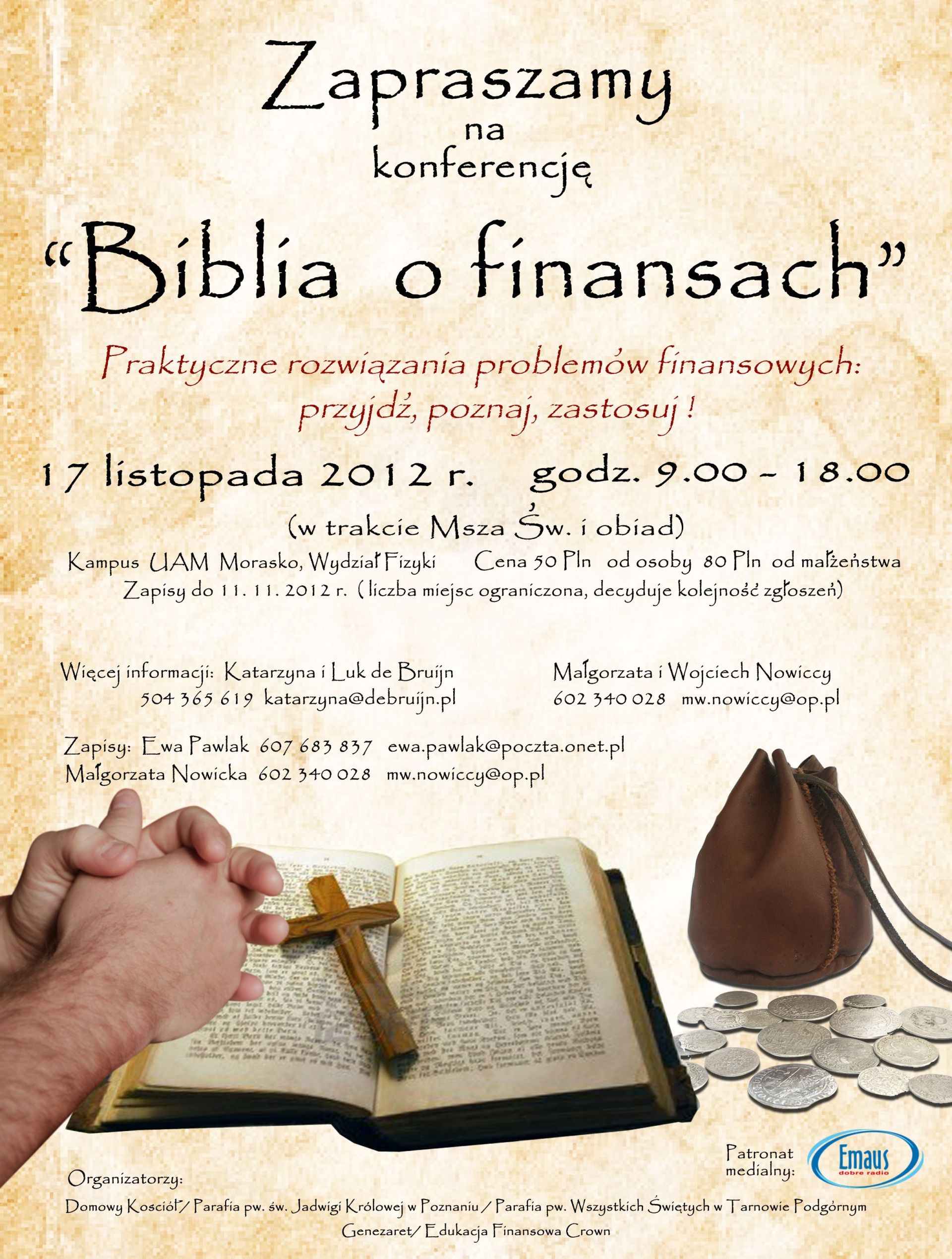Eucharystia i obiad Dług, Zestawienie, 7 zasad Wojciech Nowicki Film „Oliwa wdowy”, Dyskusja Wojciech Nowicki Przerwa II Dawanie i oszczędzanie Wojciech Nowicki |
